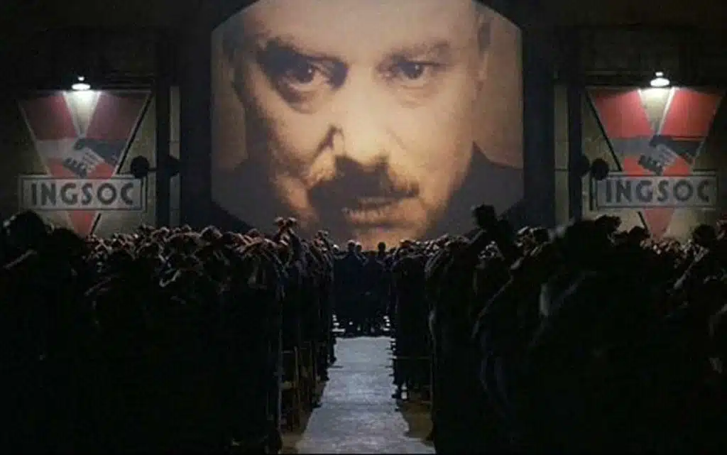 Големи плакати на Големия брат са из цялата страна. Множество невъзможни за изключване екрани непрекъснато бълват информация за „просперитета“ и военните действия, които води Океания.