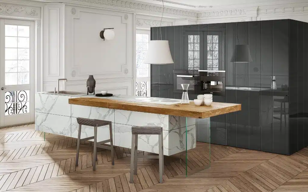 Кварцът все още заема важно място сред най-предпочитаните материали за кухненските плотове от висок клас, но мраморът стремглаво щурмува класациите и навлиза все по-бързо при обзавеждането за кухня за тази година. Като материал мраморът е изключително устойчив, синоним е на лукс от висок клас и не на последно място е нещо, което никога не излиза напълно от модните тенденции. Комбинирайте мраморни плотове с ясно изразени естествени жилки с полирани повърхности, метали и дървесина и ще имате стилна, изискана и луксозна кухня.