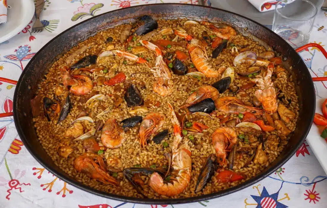 Шедьовърът на испанската кухня! Идва от Валенсия и е широко приета за национално ястие в Испания. Има три вида паеля: валенсия (с бял ориз, зелен фасул, месо – пиле, заек, бял боб, охлюви и подправки); миди (месото се замества с морски дарове и се пропуска бобът и зелени зеленчуци); микс (свободна комбинация от различни меса, морски дарове, зеленчуци и понякога боб). Вкусотии!